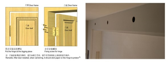 ● 安裝合頁必須在門扇及門框上雙面開槽,門扇開口與合頁嚴密,安裝時先用普通直坆螺釘安裝,紙膠帶嚴密,防止變形;