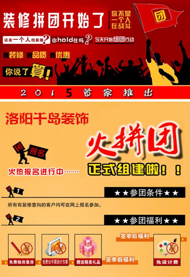 凡通過網(wǎng)絡(luò)報名后,我們工作人員會以短信或者電話確認登記,憑借短信到店咨詢即可成為本次團裝活動團員!趕快行動起來,終極神秘大禮等你來拿!洛陽千島裝飾,速度、品質(zhì)、性價比,我們力爭做洛陽好的裝飾公司!