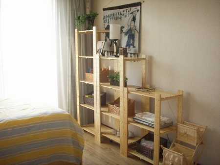 推門進去,就是一個小鞋架子,干凈整潔,進門的小地兒。房間雖小,還是要把它整得整齊點,為了門口換鞋和放雜物的需要,把大衣柜搬到這兒和這個假子一起組成一個小小玄關(guān)。
