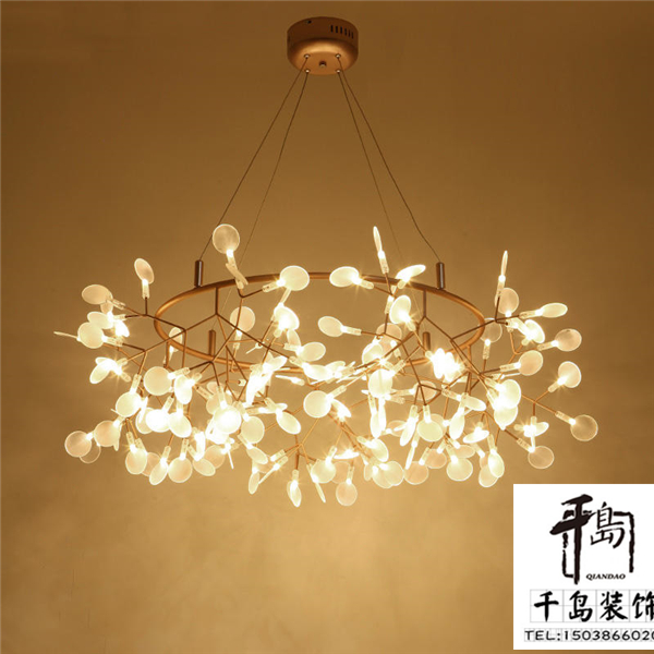 北歐現(xiàn)代風(fēng)格的LED燈具設(shè)置了若干 “白色葉子/鏡片”,像一個分叉的樹枝,其形態(tài)兼具技術(shù)性和自然美感。在夜晚開燈的時候猶如一群螢火蟲飛舞,浪漫而且溫馨。