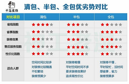 裝修前首先要搞清楚幾個裝修形式的概念,清包、半包、全包還有現在的主流整裝概念。每件事都各有它的兩面或者多面性,利或弊,好或壞。清包很省錢,全包很省力,半包則介于兩者之間,這也是為什么很多人會選擇半包的主要原因。