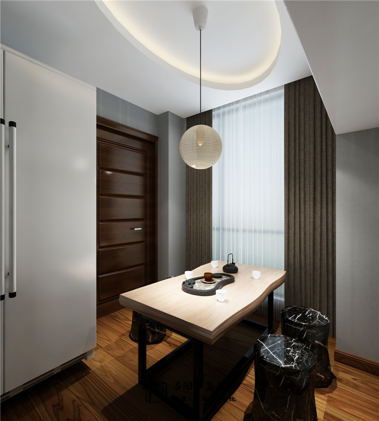 我們將用連通廚房的小休閑陽臺空間,改造成一個休閑的茶室,滿足客戶喜歡喝茶的習慣,充分利用每個空間。