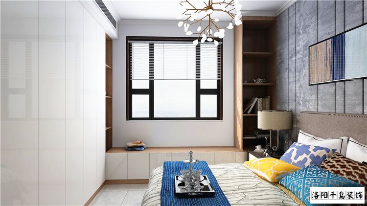 最后就是臥室,主臥衣柜一直是女業主比較糾結的地方,因為原空間衣柜位置大小,所以我們將衣柜放在床的對面,這樣一排大衣柜,再也不擔心臥室柜子不夠用了。