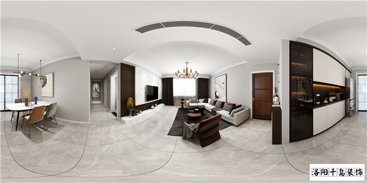 一路踐行心中所想,讓你享受舒適的同時(shí),還不忘家的溫馨,作為一名專業(yè)的洛陽裝修公司設(shè)計(jì)師,我覺得設(shè)計(jì)就應(yīng)該是這樣,在滿足合理的生活空間布局的前提下,充分的利用室內(nèi)空間,讓整個(gè)空間的視覺效果最完美的呈現(xiàn)在我們的眼前!此戶型整個(gè)客餐廳空間南北通透,黑白灰三個(gè)色調(diào)完美呼應(yīng),簡潔的巖板木飾面背景墻搭配一體地臺(tái)的設(shè)計(jì),高級(jí)感滿滿。整個(gè)空間沒有繁瑣的吊頂,石膏線搭配局部雙眼皮吊頂,客餐廳2個(gè)金色的輕奢風(fēng)吊燈,更好的點(diǎn)綴了整個(gè)空間的美好氛圍,這就是軟裝設(shè)計(jì)帶來的魅力。