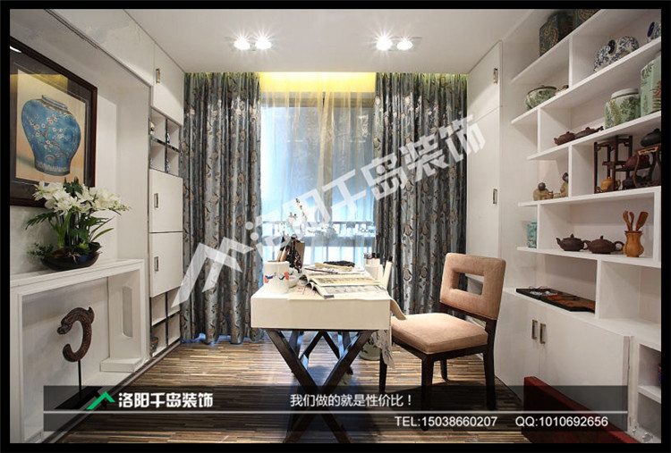 書房,是一個學(xué)習(xí)、休閑的地方,工作一整天,回到這里,讓躁動的心安靜下來,中式古典裝飾品加上現(xiàn)代化特征明顯的裝修,在這里,整個人都會得到凈化。