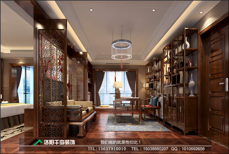 洛陽開元名郡225㎡復式新中式裝修案例@二樓臥室兼書房