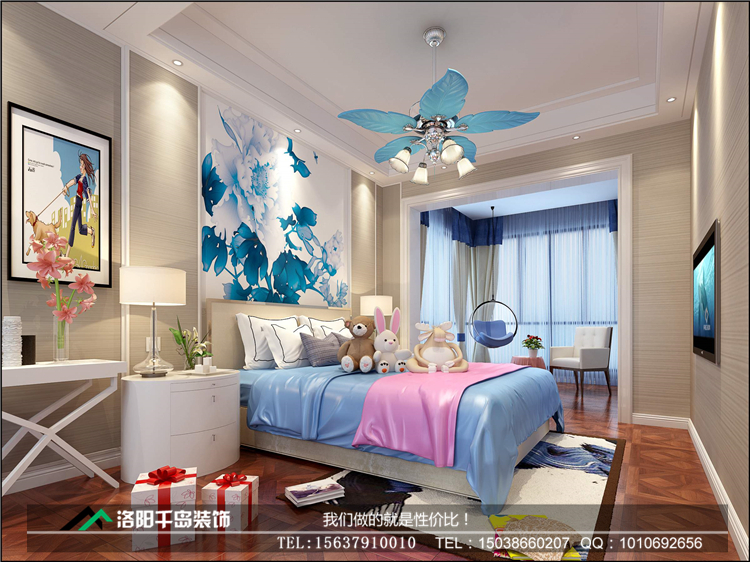 洛陽開元名郡225㎡復式新中式裝修案例@二樓女兒房