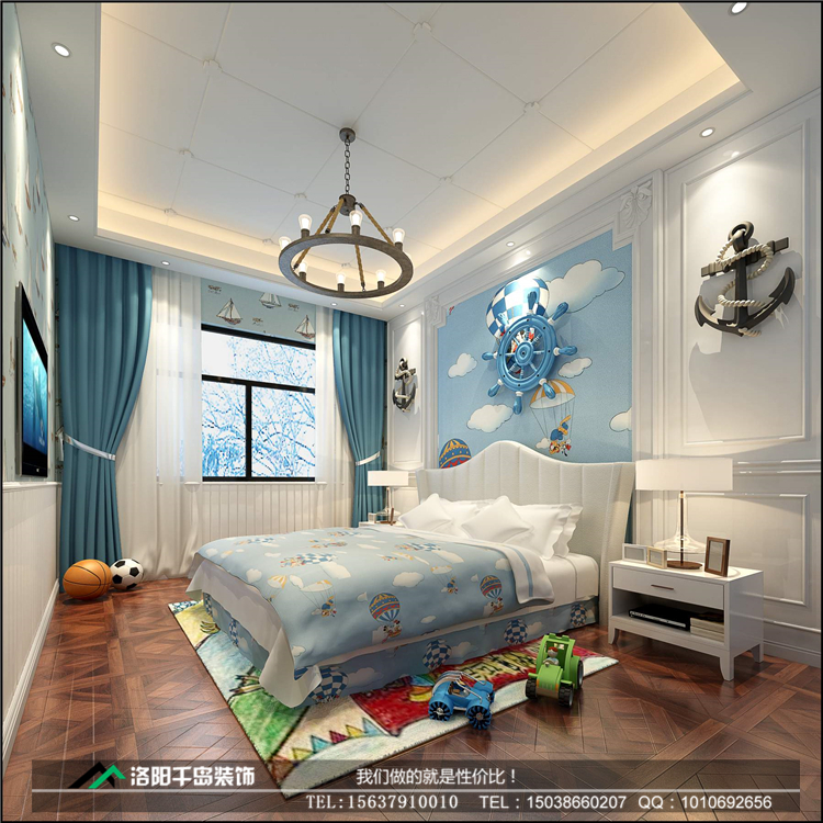 洛陽開元名郡225㎡復式新中式裝修案例@二樓兒童房