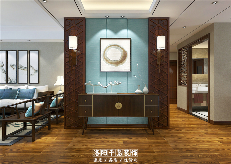 最后,洛陽千島裝飾小編溫馨提醒:新中式風格蘊含著極其豐富的明清時期家居理念精華,對設計的要求也是十分高,一不小心就會落入沉悶的老學究形象。