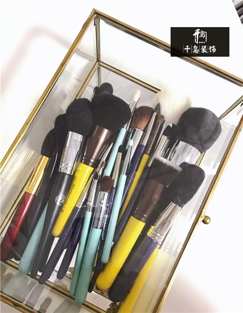 日常用的刷子放在桌面,其余放在這個玻璃盒子里。