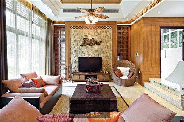 客廳作為會客區,是整間屋子的門面,所以我們挖空心思地想要把家中美的一面呈現在客廳。藤制家具線條流暢柔和、造型華貴舒適,頗有豪邁典雅的氣派,使藤制家具既不失純樸自然、清新爽快的特色,又充滿了現代氣息和時尚的特色。