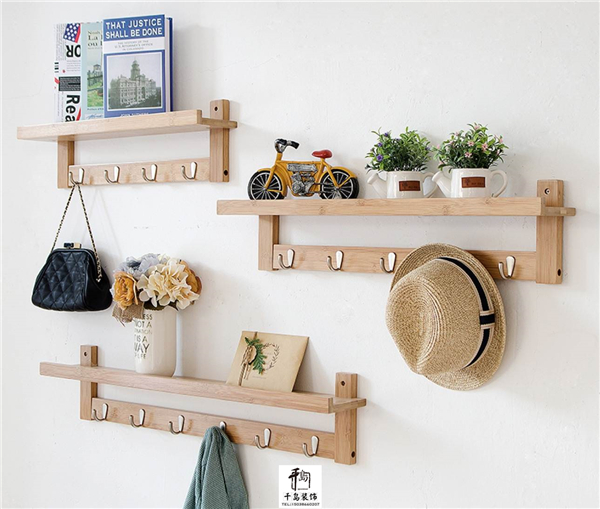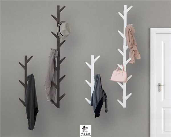 樹枝款式的衣帽架很時尚,混搭一件不同高矮和色調的組合在一起也是別有一番情調。它的每一個枝丫都能隨手掛上衣帽包包,實用性超強。還有橫向的實木衣帽掛鉤,上面的小平臺可以放一些盆栽雜志,它更像裝飾品,裝點效果非常好。