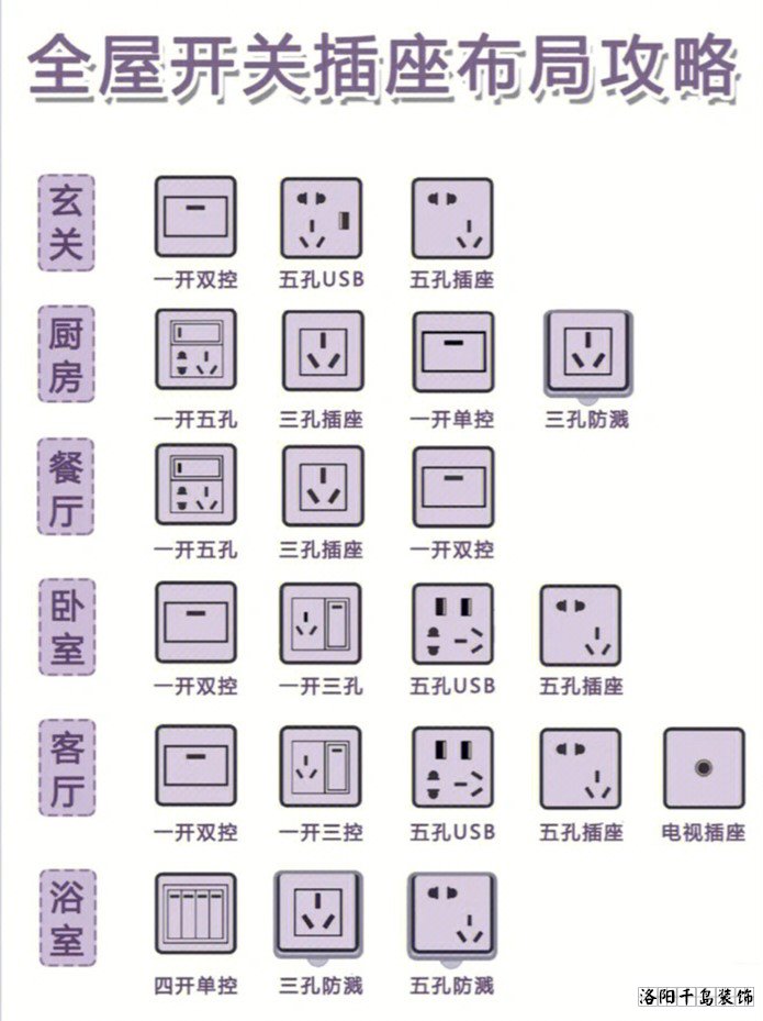 新房裝修開關插座怎么留?這已經是一個被無數人都說過的話題,對于常規的開關插座布局方法,詳細大家都已經很清楚了,今天洛陽千島裝飾的小編就著重給大家講一下,開關插座預留最容易忽略的10個關鍵點,遺漏這10個開關插座,后期沒法補救,大大影響您后期入住的舒適度和實用性。