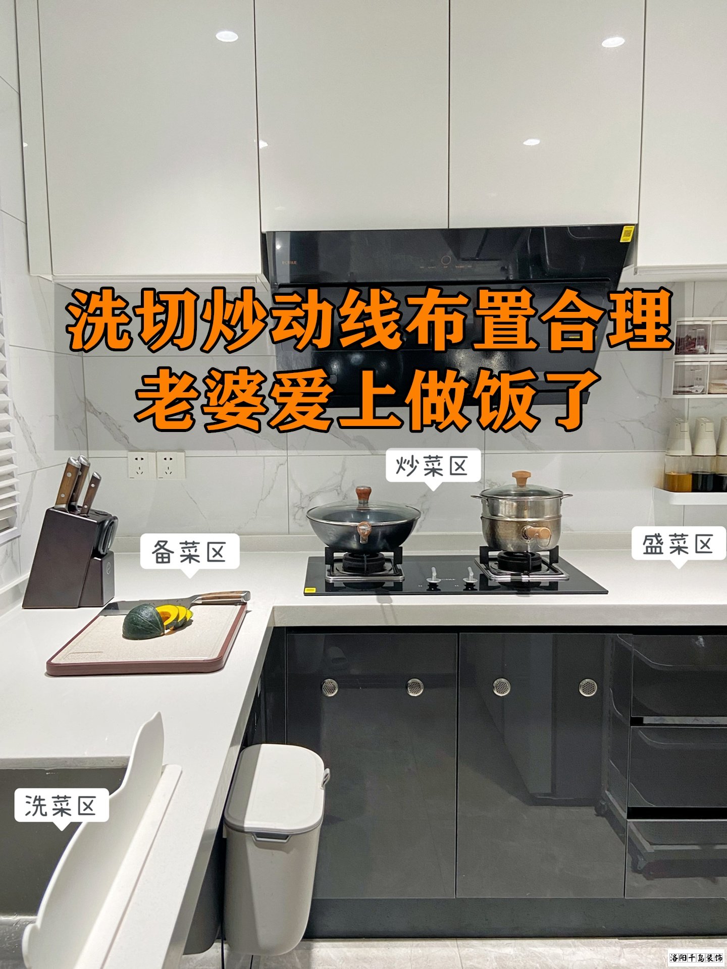 最后想要做飯更順暢,廚房的動線,你就按照洗、切、炒來布置,不走回頭路,做飯更快。