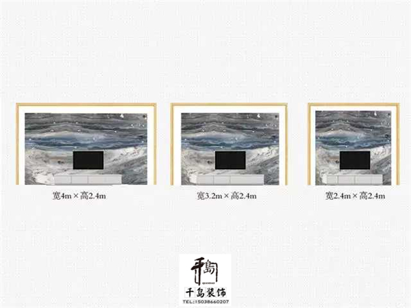 在設計背景墻的時候我們一定要考慮好背景墻的大小,主要是根據背景前的主體決定的,例如:電視。大理石尺寸方面的話呢通常是用80㎝規格石板拼裝,這樣比較容易運輸以及安裝,不過也可以選用一個整版。