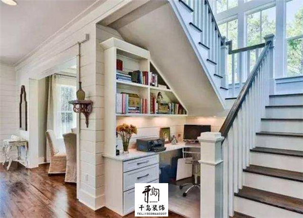 樓梯間當然不能只是存儲雜物,一張不太大的書桌和一把座椅,簡單的擺放就能組成一個實用的小書房。