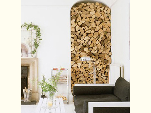 只要在凹面上稍加修飾一下,也能成為一個(gè)很好的儲藏空間。在壁爐旁邊的話,可以把柴都堆砌到這個(gè)凹面里,木材自然形成的有序堆疊又形成了一塊裝飾墻,復(fù)古而歐式。