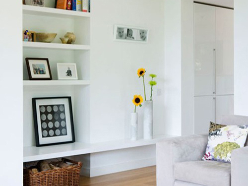 不得不說,室內(nèi)的凹處用來作收納,是一個(gè)好的選擇,不管上面能放,和地板隔開的地方都同樣能放,在上層的顯眼位置就用來放些裝飾品,讓凹陷的空間也散發(fā)出一絲藝術(shù)的光芒。