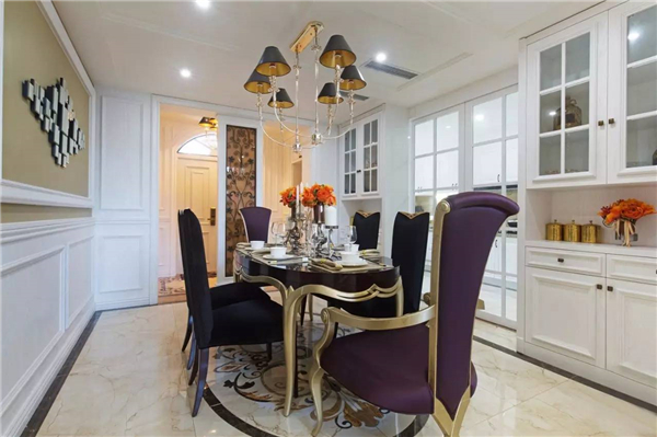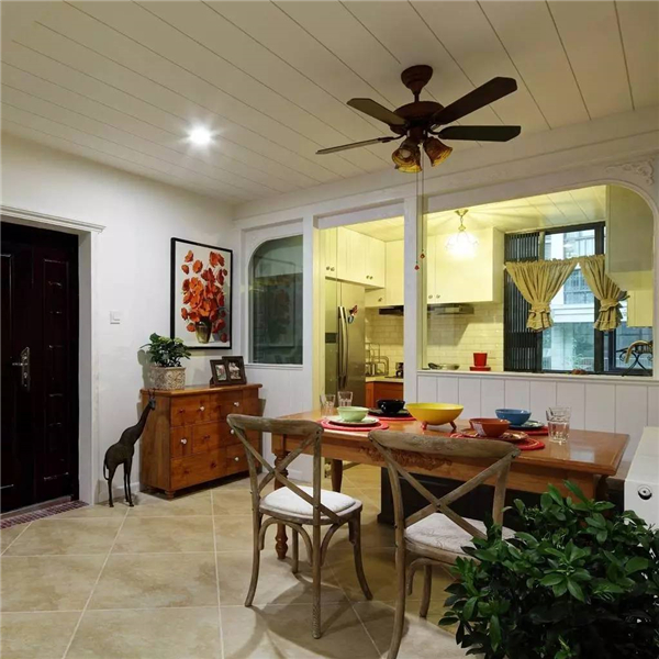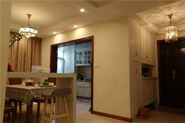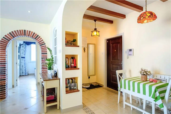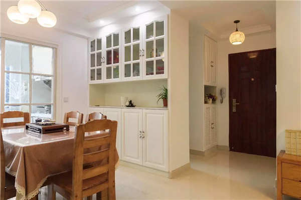 如果餐廳比較長的,可以裝一道屏風,避免入戶門直對餐廳;同時建議可以采用鞋柜隔斷,讓沒玄關的戶型隔出一個玄關空間的同時又能增加收納功能。
