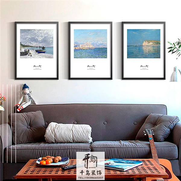 沙發(fā)背景墻可以選擇掛幾幅簡(jiǎn)約的掛畫,這件莫奈的翻印油畫,顏色比較豐富,留白的畫面顯得非常的有氣質(zhì),黑色邊框符合了對(duì)于北歐風(fēng)格定律的恪守,配合上柔柔的射燈,掛起來(lái)的效果非常贊。